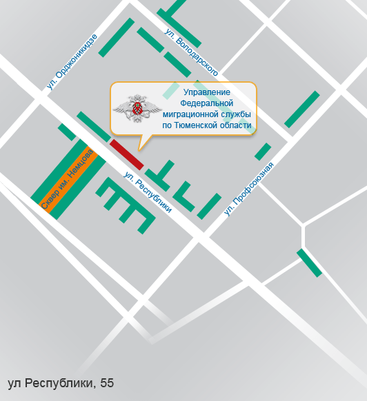 Управление по вопросам миграции Тюменской области - г. Тюмень, ул. Республики, 55 ; т. 500-437 доб. 103