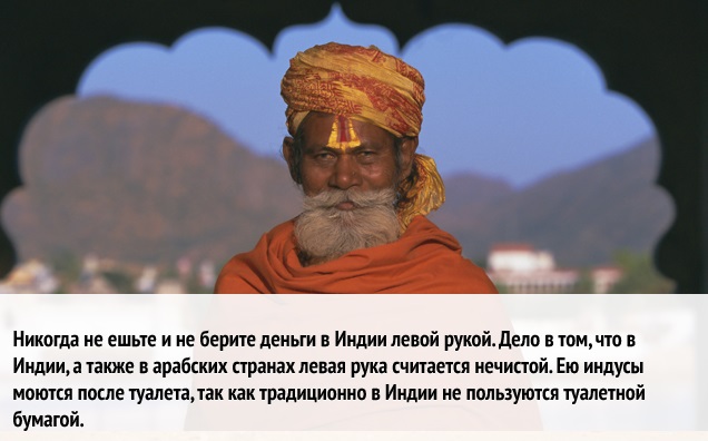 Никогда в Индии не ешьте и не берите деньги или товары в магазине левой рукой. Вот сайт где об Индии больше информации